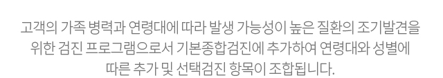 남성 | 기본종합검진 + 선택검사 1종류 ( 뇌 MRI, 심장 CT, 폐 CT, 목 CT, 허리 CT, 복부비만 CT, 부비동 CT 中 ) | 700,000 |